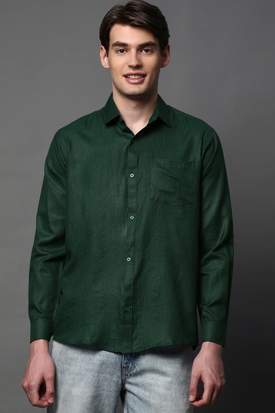 Bring effortless charm to your wardrobe with this Green Full Sleeve Cotton Blend Shirt, crafted for those who value both comfort and style. Made from a soft cotton blend fabric, it offers excellent breathability, a smooth feel, and lasting durability — perfect for all-day wear. The vibrant green hue adds a refreshing, youthful vibe that stands out in any setting.